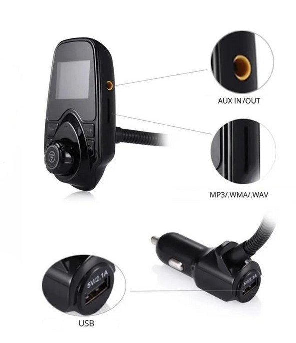 MP3 predvajalnik glasbe prenaša zvok preko FM frekvence, ki jo lahko naravnate na vašem radijskem sprejemniku. Podpira micro spominsko kartico, USB polnjenje (5V, 2.1A), Aux in, LCD, vrtljiv praktičen gumb, napajanje 12V/24V, FM razpon 87.5-108 MHz.