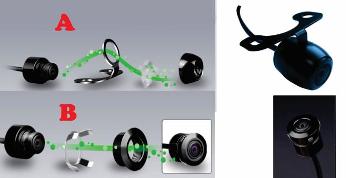 Je majhna več namenska avto kamera – 20 x 15 mm. Nudi vam možnost vgradnje na dva načina: na nosilcu ali jo vgradite na ustrezno mesto (vrtalni sveder je priložen). Standardne kamere imajo zrcalno sliko, da lahko vidite pravilno na monitorju. Pojavi se problem, kadar jo želite vgraditi na primer spredaj ali v drugačen položaj. Ta kamera vam nudi možnost obračanje slike! Prav tako lahko prekinete vidnost črte za varnostno razdaljo.