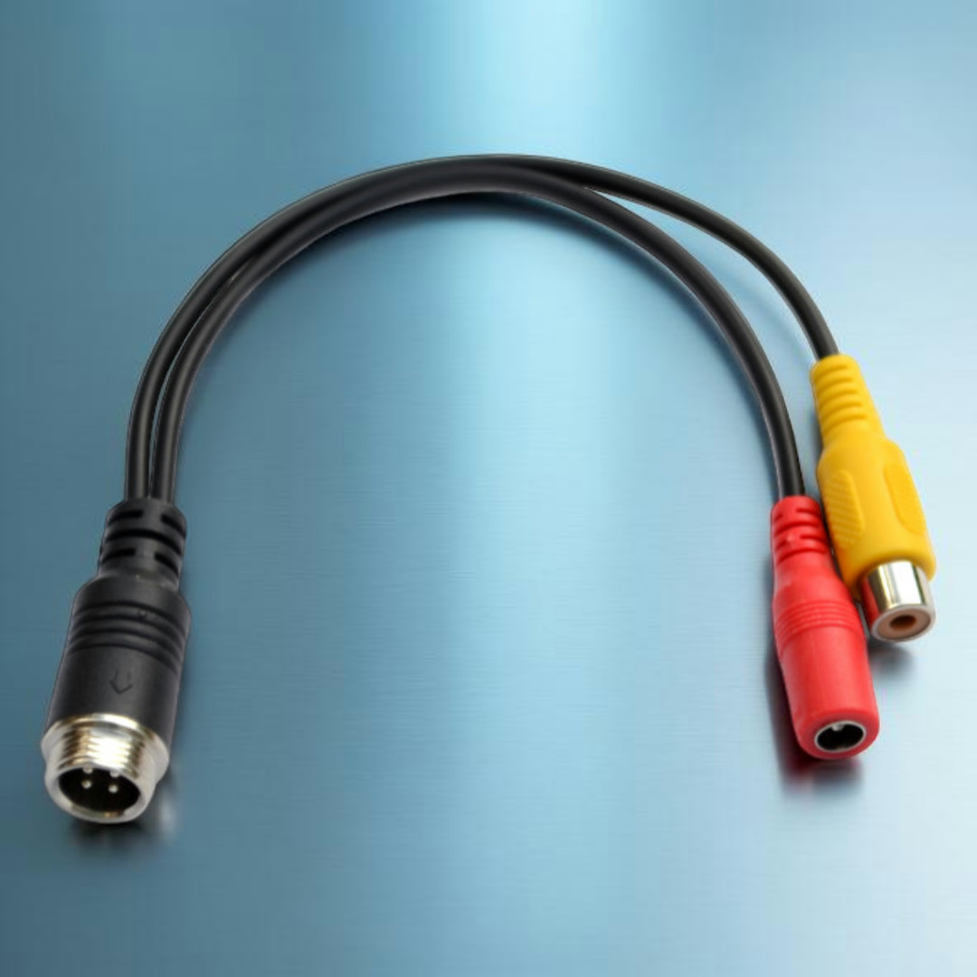 4 PIN moški priključek, 1 x RCA ženski, 1 x napajane moški. Dolžina 30 cm. Za monitorje in kamere z ustreznimi priključki.
