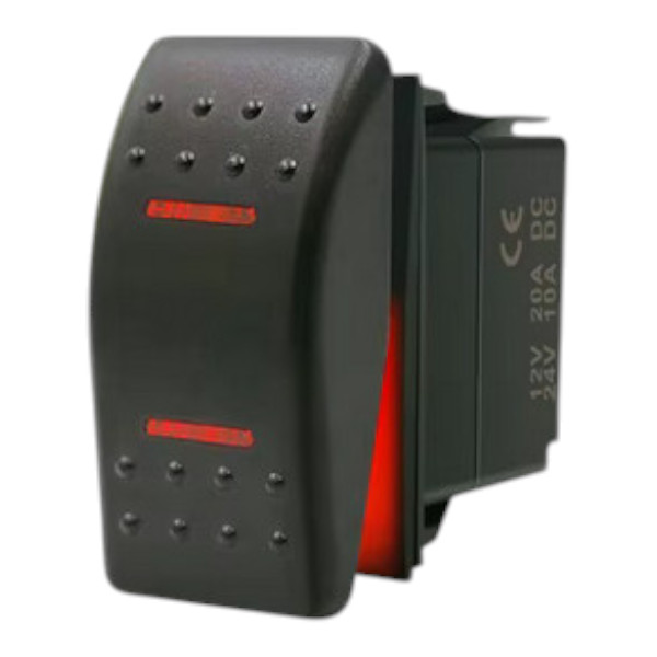 Dvopolno klecno stikalo z LED osvetlitvijo je zanesljiva rešitev za upravljanje električnih tokokrogov v vozilih, plovilih in drugih napravah, ki delujejo na napetosti 12 V (20 A) ali 24 V (10 A). Stikalo ima vgrajeno LED osvetlitev v rdeči barvi, ki jasno prikazuje stanje delovanja (vklop/izklop), kar povečuje varnost in preglednost pri uporabi, tudi v slabše osvetljenih pogojih. Z dimenzijami za vgradnjo 4 x 2 cm in 7-pinskim priključkom je enostavno za namestitev v različne sisteme. Funkcija vklop/izklop/vklop omogoča preklapljanje med dvema tokokrogoma ali izklop sistema, kar ga naredi vsestranskega za uporabo v avtomobilizmu, navtiki ali industrijskih projektih.Idealno za avtomobilske sisteme, čolne, tovornjake in druge DC aplikacije.