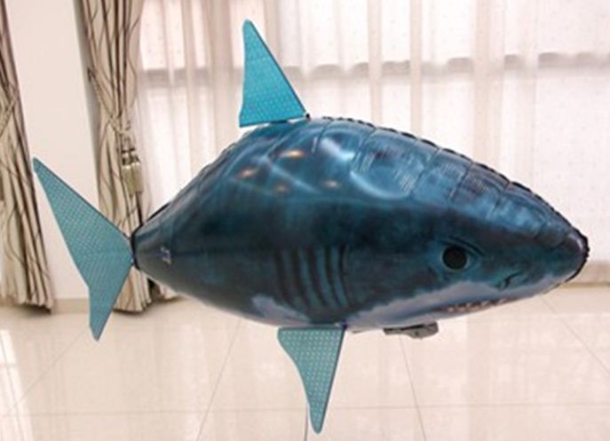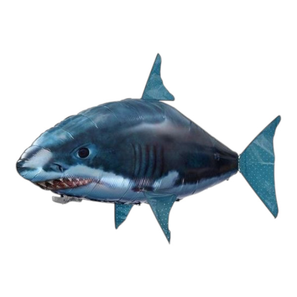 Morski pes – D 145 x V 60 x Š 50 cm, vodljiv v vse smeri, daljinski upravljalnik, balonski plin (helij) ni vključen v ceno. Dobite ga v bolje založenih cvetličarnah in darilnih butikih.