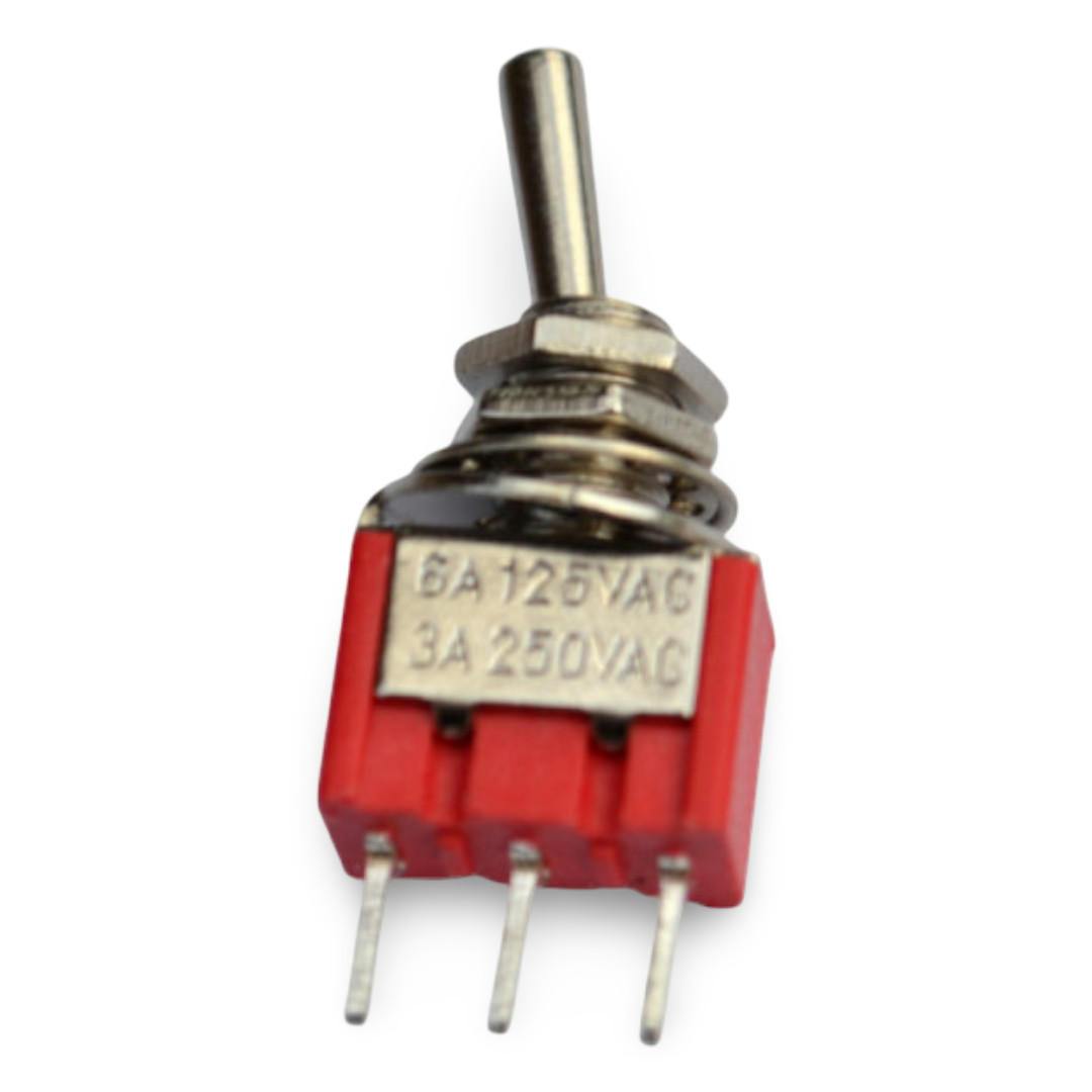 Mini enopolno klecno stikalo za napetost 250V-3A, 125V-6A AC, 3 x pin, mere za vgradnjo: premer navoja 5mm, ohišje 12 x 8 mm, funkcija: vklop/izklop
