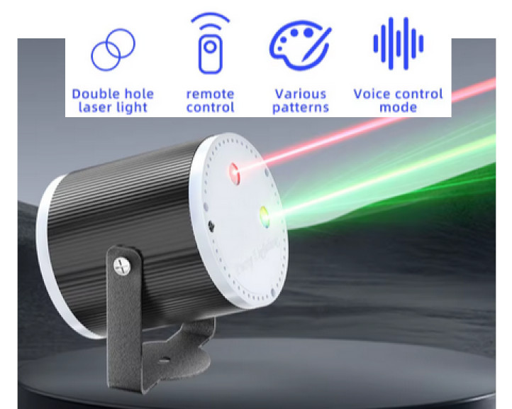 Laserski projektor z 32 vzorci se napaja preko USB (5V). Upravljate ga lahko ročno ali daljinsko. Majhen light show projektor (8 x 6.9 x 6.2 cm) z natančnimi laserskimi žarki in dolgim dometom. Primeren za zabave kjerkoli s preprosto USB povezavo.