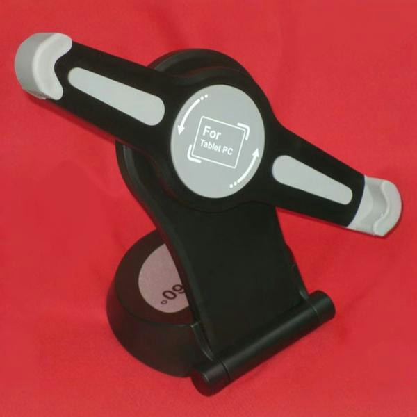 Črna, modno oblikovano stojalo z močnim držalom za tablične računalnike, čitalce digitalnik knjig (eBOOK), IPAD… po diagonali lahko pritrdite napravo najmanj 27 cm in največ 32,5 cm. Blazine in oprijem je mehak.