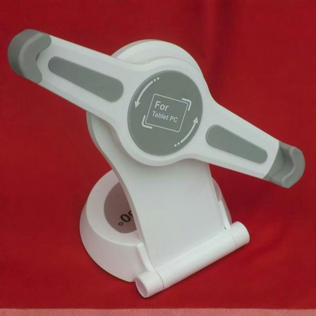 Bela, modno oblikovano stojalo z močnim držalom za tablične računalnike, čitalce digitalnik knjig (eBOOK), IPAD… po diagonali lahko pritrdite napravo najmanj 27 cm in največ 32,5 cm. Blazine in oprijem je mehak.
