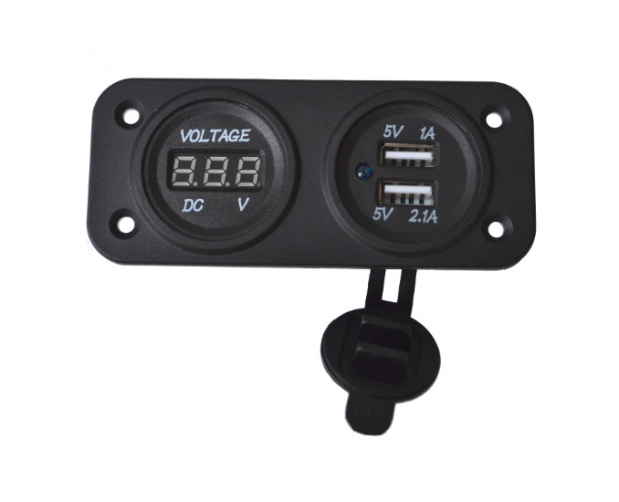 Okvir pritrdite z vijaki in je primerno za vgradnjo voltmetra, USB polnilca ali avto vtičnice… Premer luknje je 29 mm. Mere okvirja: višina 43 mm, širina 104 mm, barva črna.