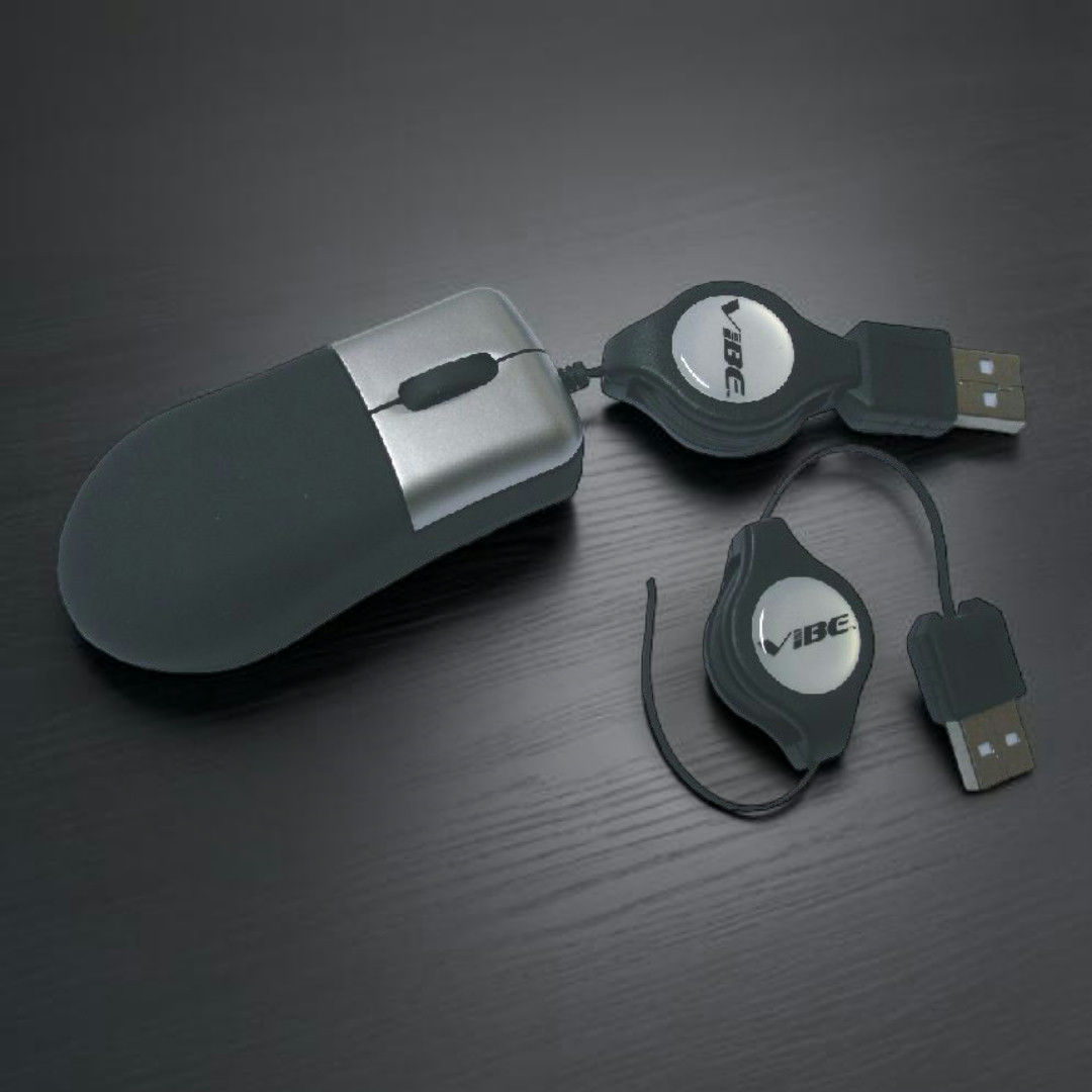 Zelo majhna računalniška miška primerna za potovanja ali spolšno uporabo. Kabel se samodejno navije.