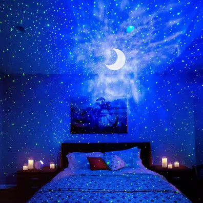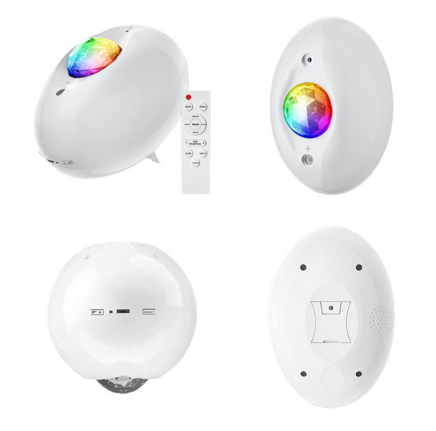 Ovalni Laser LED projektor zvezdnatega neba je večnamenska naprava, ki ustvari osupljivo vizualno izkušnjo v vsakem prostoru. Z laserskim prikazom zvezd in dinamičnimi RGB megličnimi učinki lahko pričarate sproščujoče nočno nebo ali živahno svetlobno predstavo. Projektor se odziva na glasbo, kar pomeni, da se svetlobni učinki prilagajajo ritmu vaše najljubše pesmi. Ima možnost nastavitve hitrosti premikanja, svetilnosti in izbire »strobe« efekta. Časovnik omogoča samodejni izklop po določenem času, kar je idealno za uporabo pred spanjem. Gibljiv podstavek na spodnjem delu omogoča prilagajanje smeri in naklona svetlobnih učinkov, kar zagotavlja optimalno projekcijo v prostoru.
