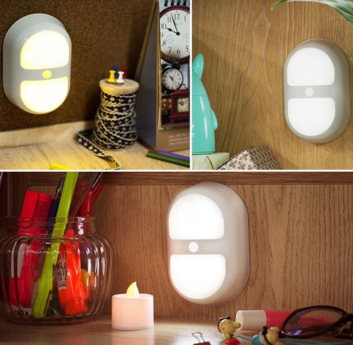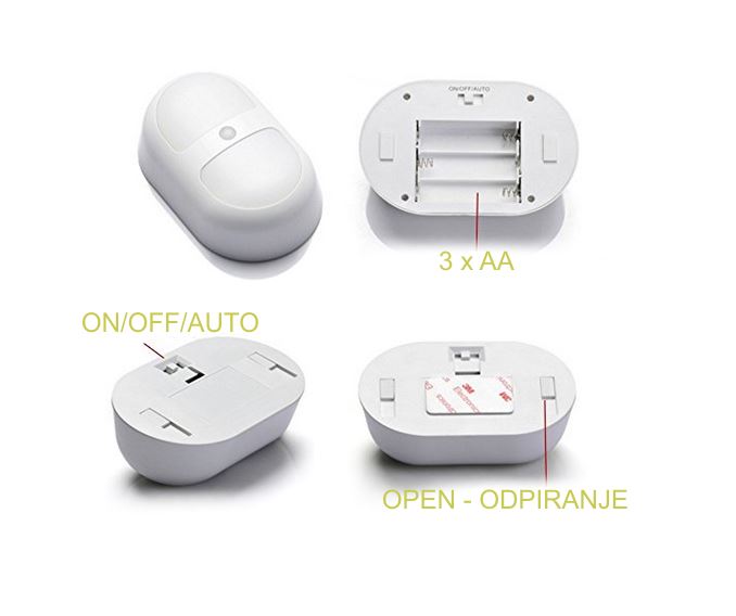 Varna, varčna LED svetilka na baterije (3 x AA, niso priložene) z rumeno mehko svetlobo in dolgo dobo delovanja. Vključite lahko senzor za samodejni vklop ali ročno, lahko jo prilepite na površino, je zelo praktična in uporabna kjer potrebujete svetlobo.