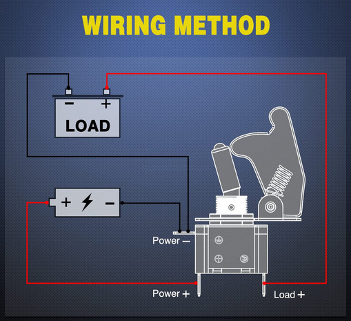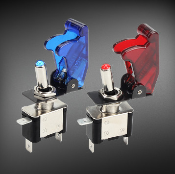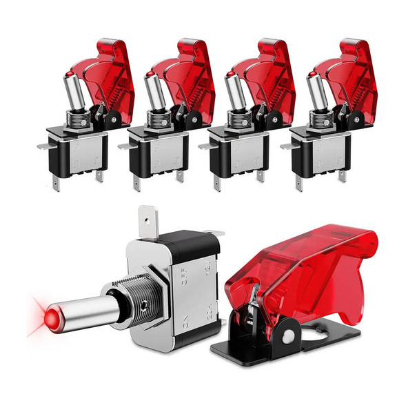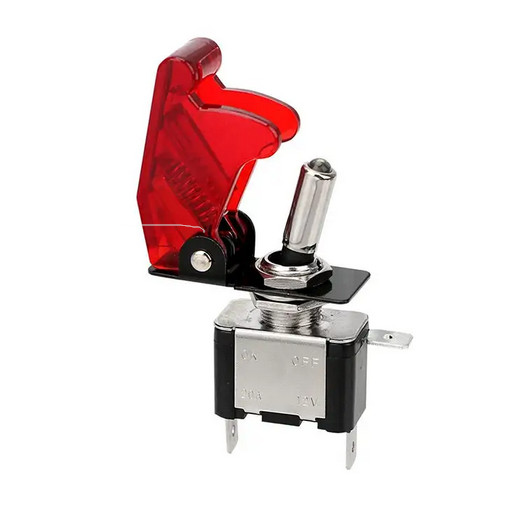 Preklopno stikalo 20Amp 12V/DC, LED osvetev (rdeča) na vrhu stikala, pregibni varovalni pokrovček. Širina 18 mm. Funkcija vklop/izklop.