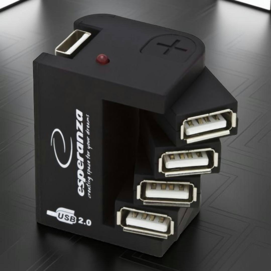 USB kompakten delilnik; 4 x USB, 480MB/5V/500mA, idealen za uporabnike prenosnih in namiznih računalnikov.