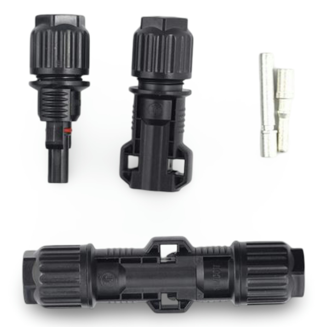 Vodoodporni konektor za solarni sistem je odporen na vremenska nihanja in ima dolgo življenjsko dobo. V kompletu je moški in ženski del, za kabel od 4 mm2 – 10 mm2 (baker pocinkano), IP67, do 1000V, tok od 20-30A, območje delovanja -40 do 85°C, UL94V-O