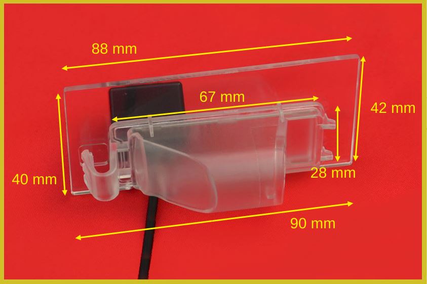 Vodoodporna avto kamera za FIAT, vidni kot 120°, 12V DC, senzor CCD, priložen video kabel 6m RCA + kabel za samodejni vklop monitorja, napajalni kabel 1 m, črta za varnostno razdaljo, 4 x LED za dodatno osvetlitev površine, enostavna vgradnja