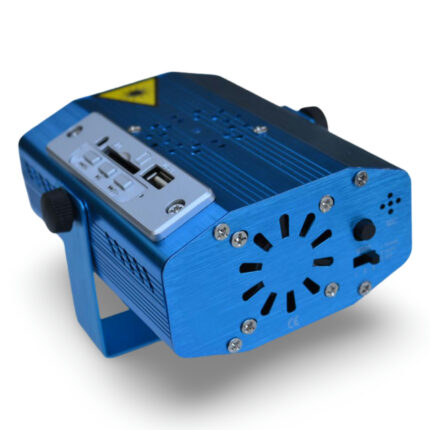 Predvajalnik MP3 glasbe + projekcija laserske svetlobe, velik domet in ostrina barv, se odziva na glasbo, nastavljate hitrost vrtenja, utripanja ali ustavite na želeno obliko. Priložen usmernik 220V-5V, rdeča - 650nm/100mW, zelena - 532nm/30 mW, mere: 12