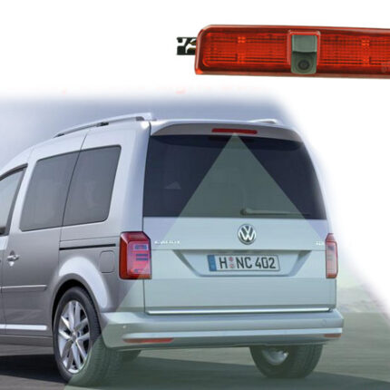 Vodoodporna avto kamera za VW, VOLKSWAGEN Caddy z zavorno lučko. Lastnosti: IP69K, 120°, 1/3" CMOS, ločljivost slike 510*492 točk, poraba 3W, napajanje 12V, priložen 4PIN kabel 10m, priložen adapter za RCA priključke.