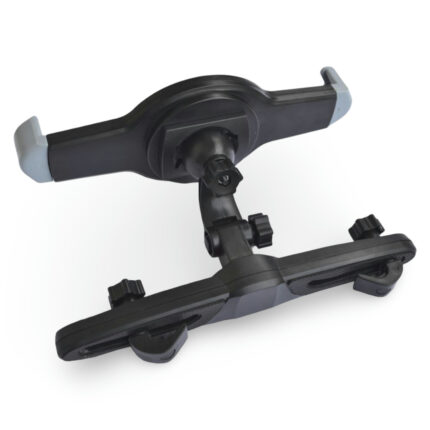 Gibljiv nosilec za pritrditev na vzglavnik avtosedeža za Tablice, IPAD, eBOOK, hitra in enostavna namestitev, pritrditev na nosilne palice 55 mm do 205 mm, diagonalni prijem za napravo od 200 mm do 265 mm in debeline največ do 14 mm.