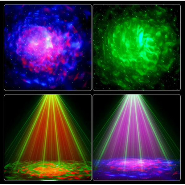 Ovalni Laser LED projektor zvezdnatega neba je večnamenska naprava, ki ustvari osupljivo vizualno izkušnjo v vsakem prostoru. Z laserskim prikazom zvezd in dinamičnimi RGB megličnimi učinki lahko pričarate sproščujoče nočno nebo ali živahno svetlobno predstavo. Projektor se odziva na glasbo, kar pomeni, da se svetlobni učinki prilagajajo ritmu vaše najljubše pesmi. Ima možnost nastavitve hitrosti premikanja, svetilnosti in izbire »strobe« efekta. Časovnik omogoča samodejni izklop po določenem času, kar je idealno za uporabo pred spanjem. Gibljiv podstavek na spodnjem delu omogoča prilagajanje smeri in naklona svetlobnih učinkov, kar zagotavlja optimalno projekcijo v prostoru.