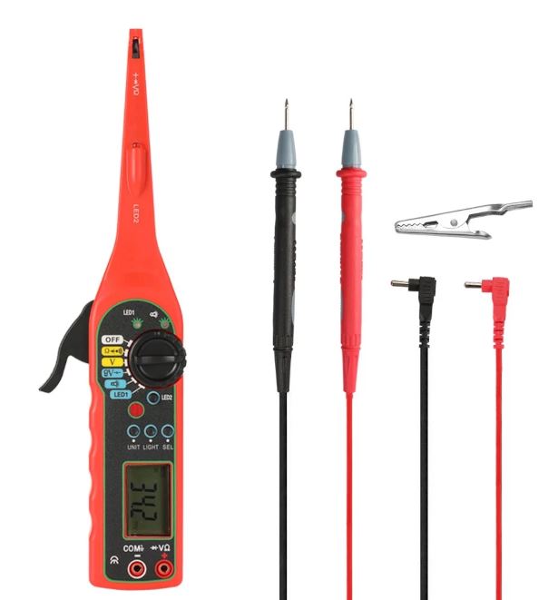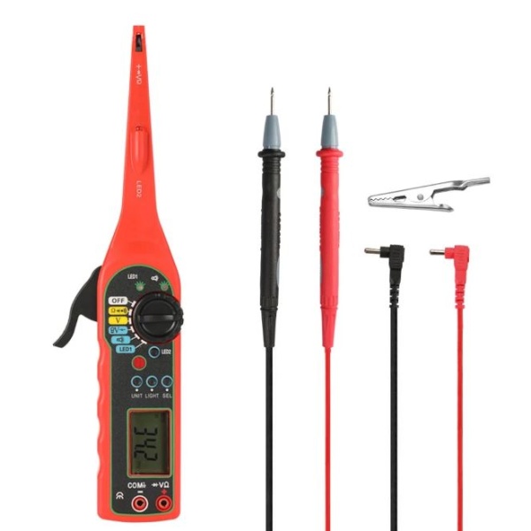 Je priročen za uporabo, učinkovit za odkrivanje napak, enostaven za upravljanje in ima zanesljivo delovanje. Področje delovanja je 12V do 24V oz največ do 35V. Opozorilo – ni namenjeno za 220V električno omrežje. Potrebujete 2 x AA, 1.5V, baterije niso priložene.