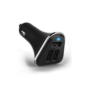 Črn močan avto polnilec z prenapetostno zaščito in zaščito proti segrevanju baterije, ABS obstojno in trpežno ohišje, modra LED osvetlitev. Polni lahko 3 naprave istočasno - vhodna napetost 12-24, izhod 5.2A/DC5 V, 3xUSB. Mere 75x40x40mm, teža 26,5g